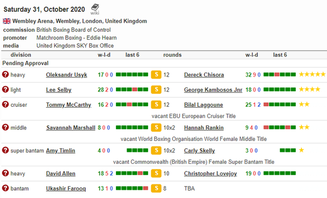 - Місце бою: стадіон Вемблі (Лондон, Великобританія)