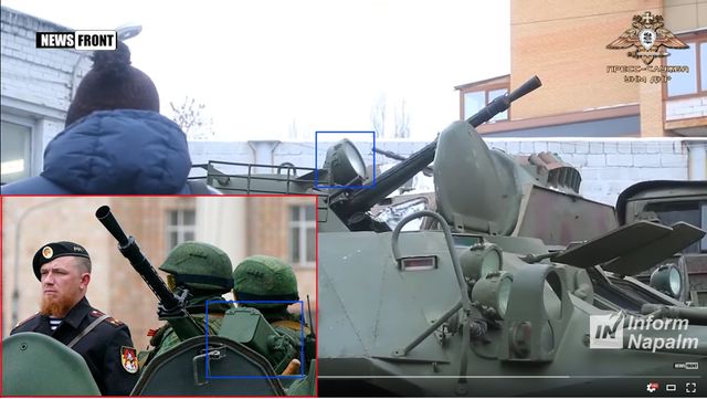 Сепаратистський ресурс "News-Front" оприлюднив відео з Донецька, на якому українські волонтери впізнали модифікований російський БТР-80 з прицілом ТКН-4ГА-01 російського виробництва.