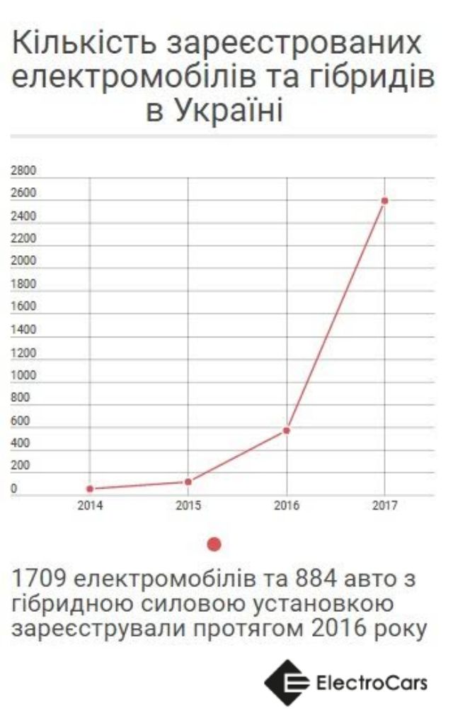 За 2016 рік кількість авто на електротязі зросла у чотири рази порівняно із попереднім роком.