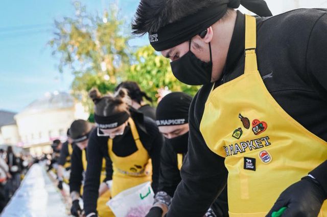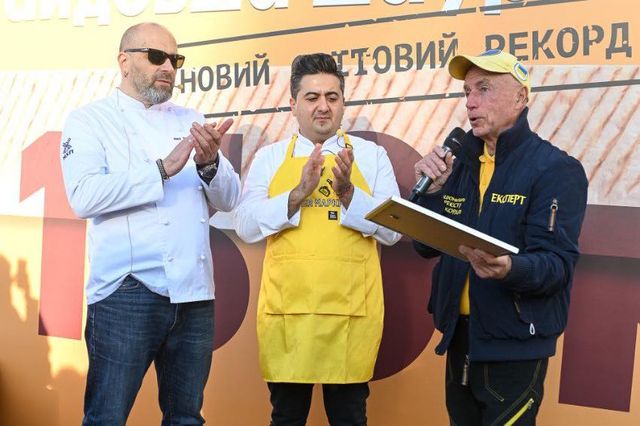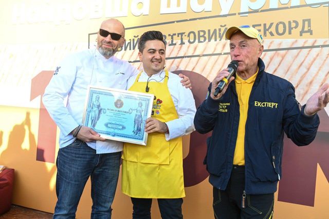 Так, на Контрактовій площі в українській столиці 120 кухарів встановили світовий рекорд, приготувавши 200-кілогармову шаурму. Фастфуд став найбільшим у світі. Про це йдеться на сторінці компанії МХП у Facebook.