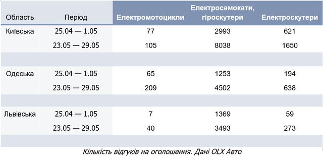 Що стосується електричного персонального транспорту, то найбільше ним цікавились на Київщині, Одещині та Львівщині. Там максимально зріс попит на електросамокати й гіроскутери.