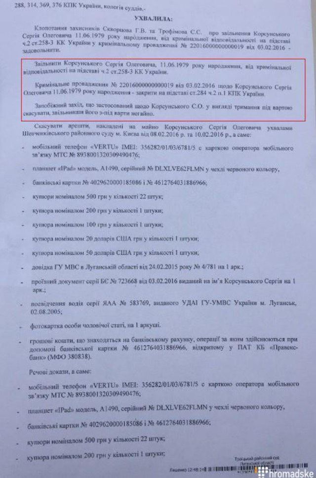 Відзначимо, що Корсунський частково визнав свою вину. Під вартою в київському слідчому ізоляторі СБУ він перебував 8 місяців.