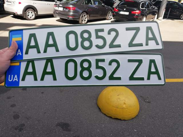 Повідомляється, що при реєстрації електромобіля будуть видаватися саме такі номери. Також будуть видані зелені держномери, якщо українець буде проводити розмитнення євробляхи на повністю електричному двигуні.