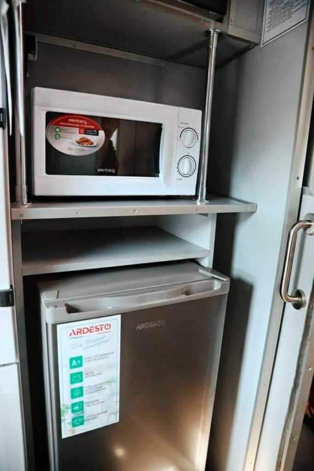 Розробники дійсно постаралися і вклали зусилля, що б подорож потягом була максимально зручною. Варто відзначити, що це старий пострадянський вагон, який зуміли переробити. Пасажири можуть користуватися мікрохвильовкою, холодильником і зручним умивальником, а також сучасною кавомашиною. У модернізованому плацкартному вагоні також є вже розетки з USB-роз'ємами. До кінця року компанія планує запустити ще два таких вагони.
