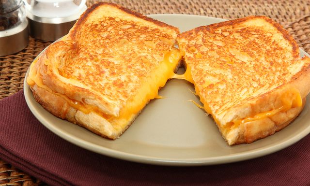Розтопіть масло, сир натріть на дрібній тертці. Наріжте хліб тонкими скибочками, одну сторону змастіть розтопленим маслом і посипте тертим сиром. Викладіть грінки на деко і поставте в духовку, розігріту до 200°С, щоб грінки злегка зарум'янилися, на 5 хв. При подачі посипте порваними листочками базиліку.