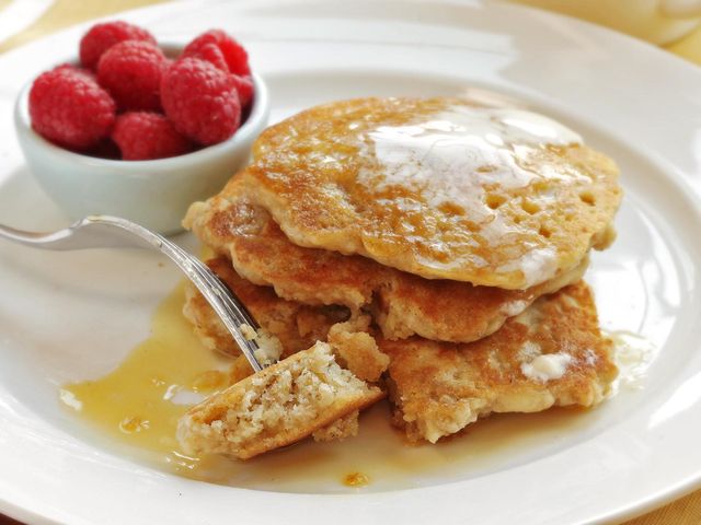М'які, солодкі, смачні американські млинці, які ще називають панкейки, класно поєднуються з медом. Панкейки на молоці сподобаються і дорослим, і дітям. Змішайте 2 яйця і 200 мл молока. Потім додайте 2 ст.л. цукру і ваніль. Додайте 10 ст. л. муки і розпушувач. Ретельно перемішайте. Тісто для панкейків на молоці має вийти досить густим. Розігрійте пательню з антипригарним покриттям. На суху сковорідку налийте невеликий ополоник тіста, закрийте кришкою, смажте панкейки на середньому вогні. Переверніть, коли верхня поверхня панкейку стане пористою, при цьому ще вологою. Кожен млинець готується не більше 1 хв. Складайте готові американські млинці-панкейки вежею на тарілці. Подавайте панкейки на молоці з медом і горіхами.