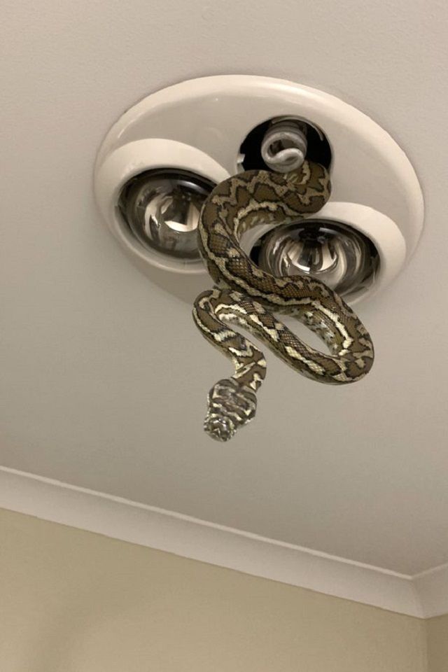 Інцидент стався в австралійському Брісбені. Величезна змія вилізла з отвору під лампочку на стелі. Діти, що чистили у цей час зуби, злякавшись вибігли з ванної.