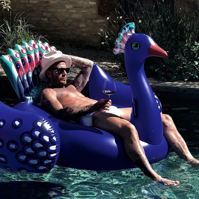 Щирий блог красуні настільки подобається користувачам, що за ним стежать понад 21 млн підписників. Нещодавно 44 британка поділилась веселим фото коханого Девіда Бекхема, від якого важко втримати сміх. А все тому, що знаменитий футболіст спокійно лежить на величезному надувному павичі у капелюсі і з бокалом вина.