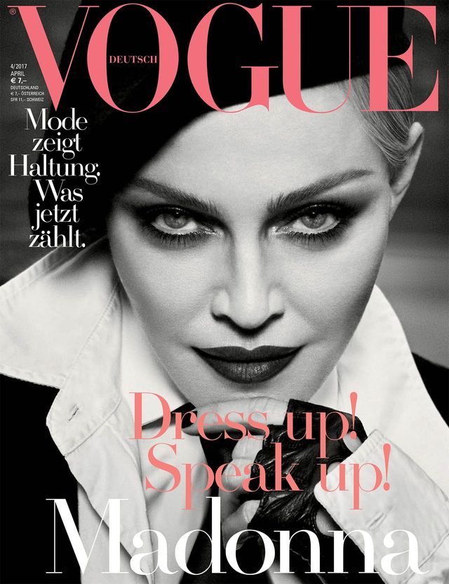 58-річна артистка стала головною героїнею квітневого номера Vogue (Німеччина), прикрасивши три різні обкладинки глянцю. На сторінках німецької "Біблії моди" Мадонна з'явилася в елегантних образах, показавши свій бездоганний стиль.
