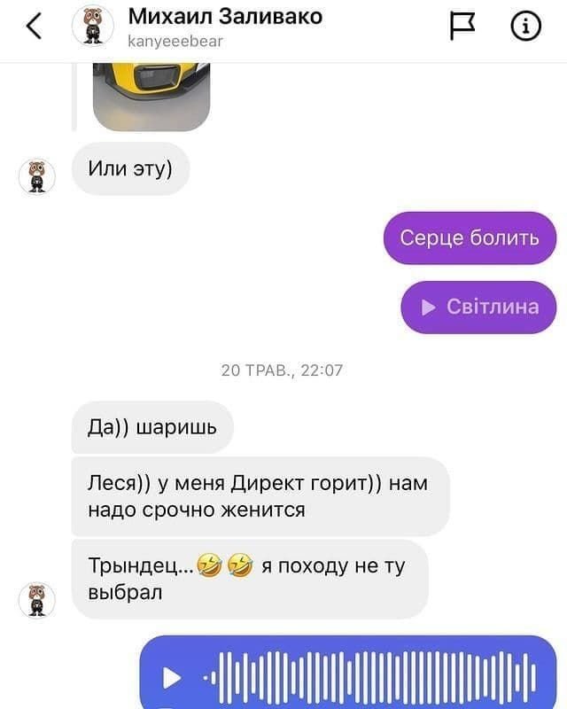 Також підписники зірки побачили і листування з "холостяком" Михайлом Заливаком: