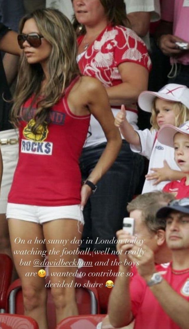 "У спекотний сонячний день в Лондоні дивимося футбол. Ну не зовсім, але хлопчики і Девід дивляться", – написала Вікторія на опублікованому кадрі.