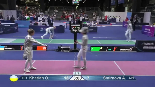Українська шаблістка Ольга Харлан не без пригод стартувала на чемпіонаті світу з фехтування в Мілані. На початку українка перемогла росіянку Анну Смірнову, яка виступає під нейтральним прапором – 15:7.