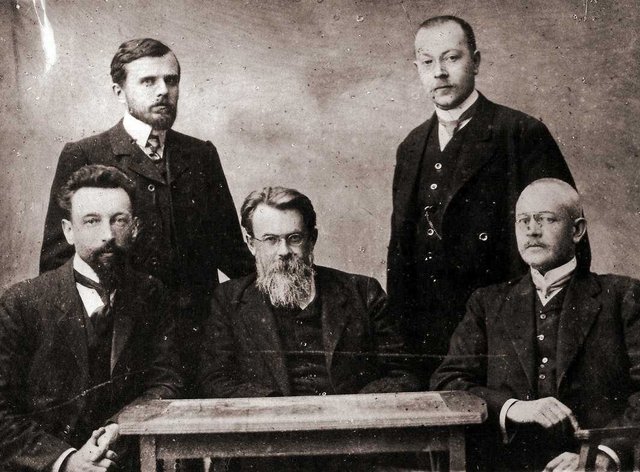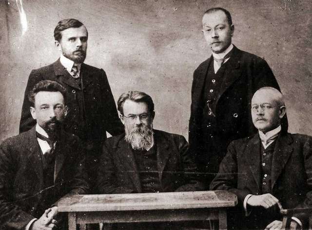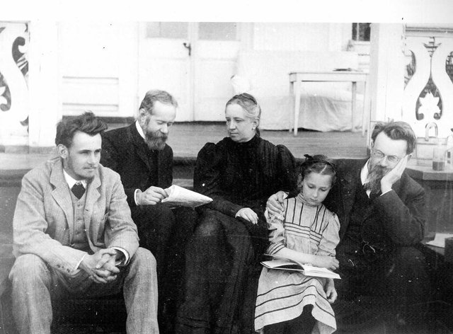 На фото справа наліво: Вернадський, дочка Ніна, дружина Наталія, її родич П.Є. Старицький і син Георгій. 1908 рік