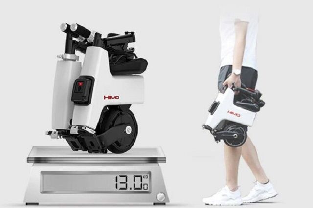 У велосипеді Himo H1 складається все, що можна. Спочатку – обидва колеса під рамою, потім сама рама, після цього – стійка сидіння і сидіння, і нарешті опускається кермо. Вага велосипеда становить 13 кг. Він цілком міг би поміститися в портфель, але в комплекті йде спеціальний чохол для перенесення.