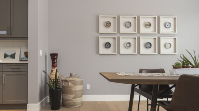 Зонувати простір також можна за допомогою різних матеріалів. Наприклад, у поєднаних кухнях та їдальнях часто використовують плитку біля робочої поверхні, а в обідній зоні — паркет або ламінат. Ефектно виглядає і зонування кольором, де використовуються контрастні відтінки або меблі, що візуально розмежовують зони.