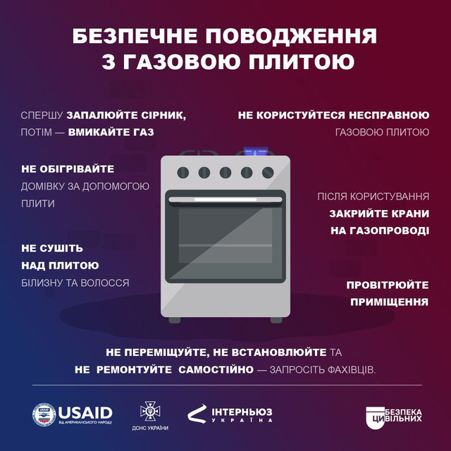 - Спершу запалюйте сірник, а після — вмикайте газ.