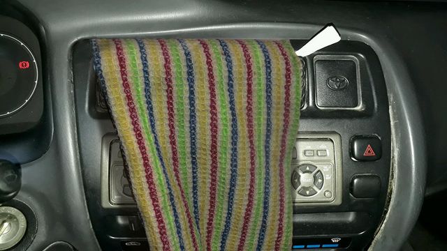 Можна використати мокру тканину, закріпивши її на вентиляційних отворах. У процесі зволоження повітря буде трохи охолоджуватися. Цей спосіб поганий тим, що тканина швидко висихає – її доведеться часто змочувати.