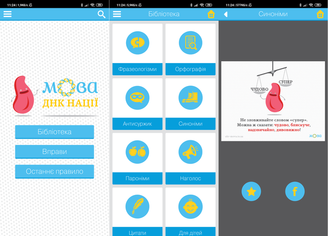 Шалено популярний додаток серед українців, який дозволить не лише вивчити фразеологізми, а й уникнути найпопулярніших "вкраплень" суржику. Також вона дає можливість вивчити синоніми, правильне розставлення наголосів і орфографію. Крім того, можна проходити вправи, які дозволять закріпити пройдений матеріал. Лепетун чекає на вас!