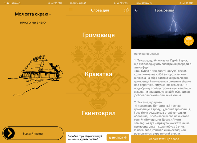 Проста програма, яка дозволить тим, хто володіє українською, вивчити нові слова. Усі вони розкидані по алфавіту. Також доступний пошук. Аби прибрати рекламу потрібно буде викласти 54,99 гривні. Але, якщо бути відвертими, вона не така вже й нав'язлива, щоб за цей функціонал платити.