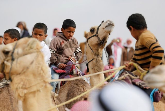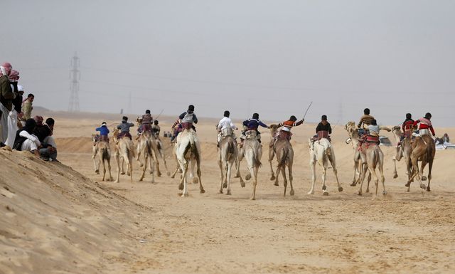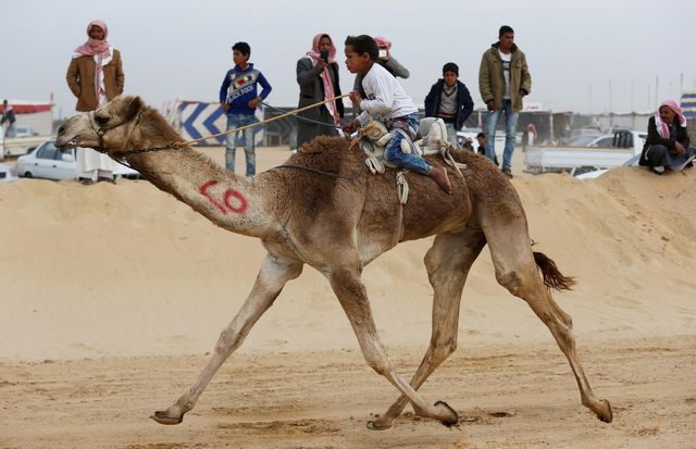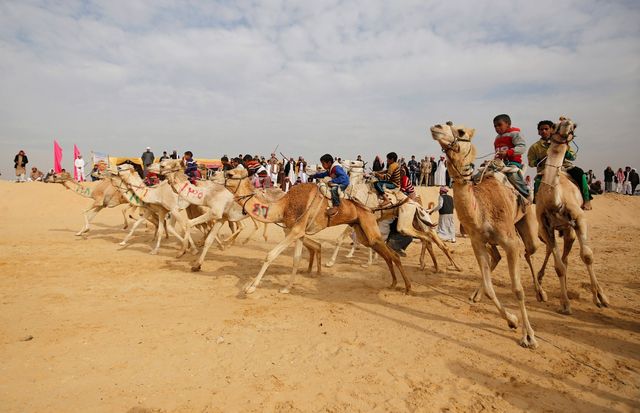 На безлюдній піщаній трасі в східному Єгипті відбуваються перегони на верблюдах. Ця гонка є частиною щорічного фестивалю верблюдів за межами міста Ісмаїля, в якому беруть участь учасники з 13 арабських країн, а також ентузіасти з Франції, Німеччини, Італії та Австрії.