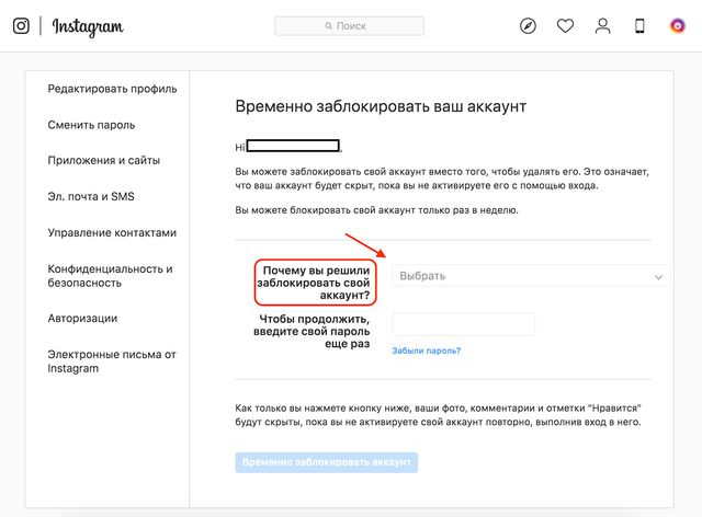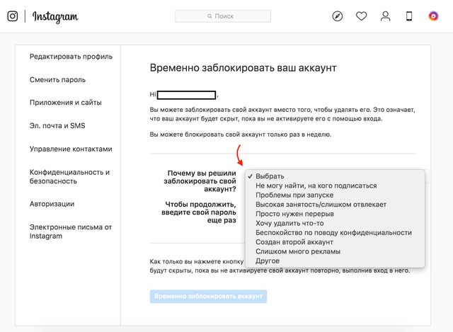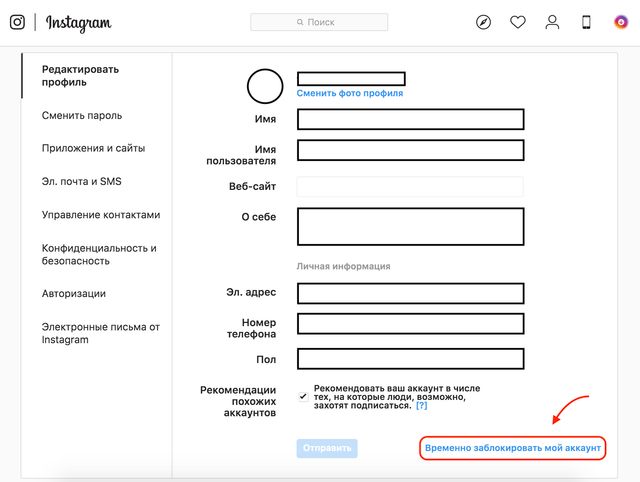 Як видалити сторінку в Instagram тимчасово з комп'ютера