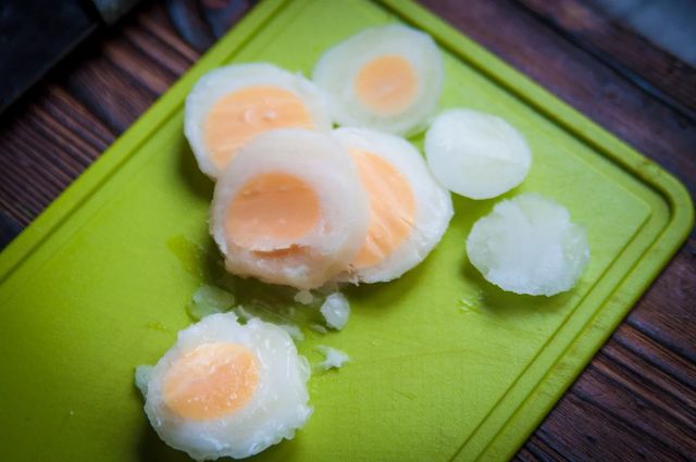 Яйце треба заморозити звечора. Мити яйце треба ретельно ДО заморозки, адже шкарлупка при зниженні температури лусне. Якщо шкаралупа очищається складно – потримайте кілька секунд в прохолодній воді.