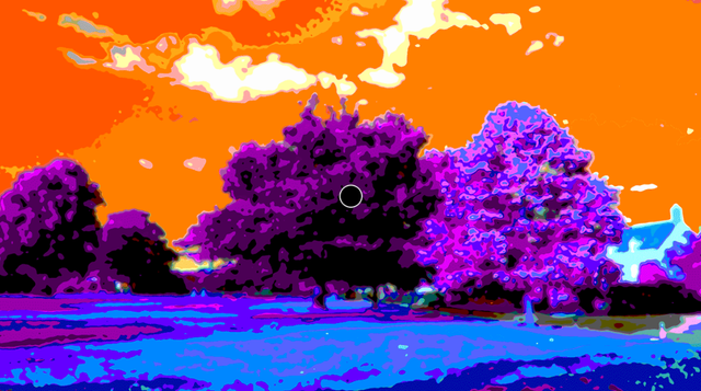 Спершу Стіл показує глядачам чорно-білий знімок сільської місцевості. Далі зображення "розфарбовується" в оранжевий, фіолетовий і блакитні кольори, а в центрі з'являється чорна точка. Фотограф просить дивитися на неї протягом 10 секунд. Коли на екрані з'являється первісний чорно-білий варіант фото, глядачеві здається, що він бачить кольоровий пейзаж.