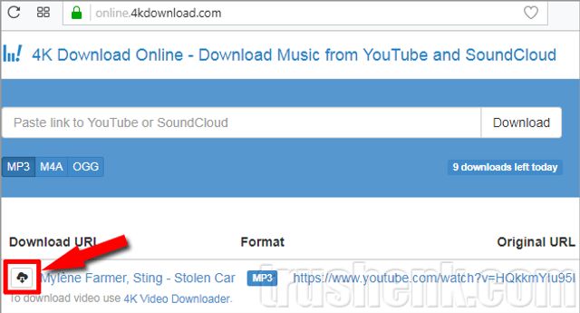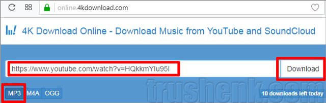 2. Відкриваємо сайт online.4kdownload.com, вставляємо скопійовану адресу в спеціальне поле з написом "Paste link to YouTube or SoundCloud", вибираємо формат відео MP3 і натискаємо Download.
