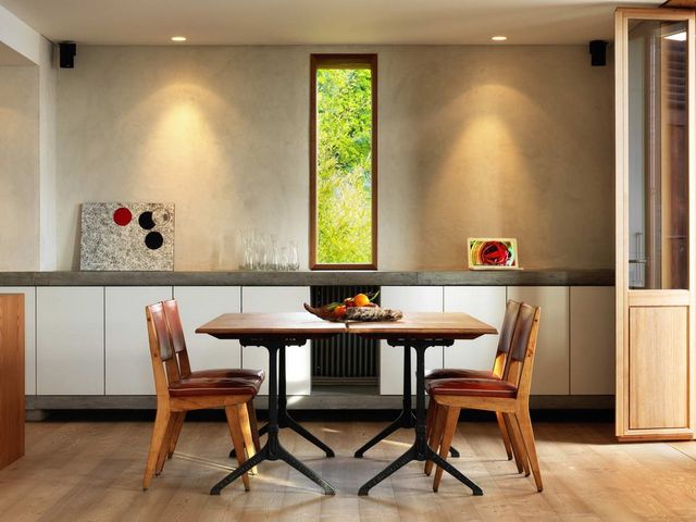 Ззовні дім майже повністю зберіг свій вигляд, а всередині залишились лише центральні сходи з горіха та кованого заліза. Однак весь інтер'єр доволі мінімалістичний та вдало поєднується з сучасністю, адже містить все необхідне для спокійного життя без турбот. На першому поверсі є вітальня та кухня, які з'єднані із садом, а головна спальня по центру будинку, таким чином весь верхній поверх є дитячим.