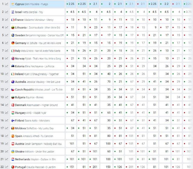 А от представник Швеції Бенджамін Інгроссо, якому пророкували виліт після другого півфіналу, зараз замикає ТОП-5 претендентів на перемогу.
