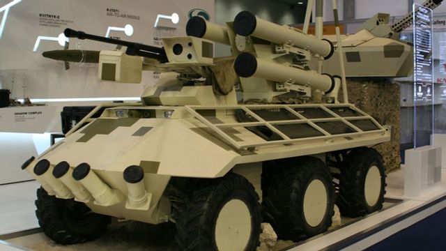 Мабуть, головною новинкою від "Укроборонпрому" став БТР-4МВ1. Українці модернізували прототип БТР-4мВ, який було представлено три роки тому. Родзинкою цього транспортеру є те, що в нього взагалі немає ані вікон, ані дверей у передній частині машини. Крім того, на броні додатково розмістили модульні бронеплити, які можна замінити навіть у полі, якщо, звісно, мати запчастини.
