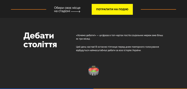 Дебати відбудуться 19 квітня о 19:00. Вхід на стадіон розпочнеться о 16:00, а о 17:00 – початок програми.