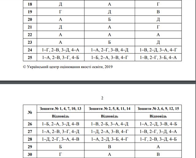 ЗНО українська мова і література 2019 – правильні відповіді