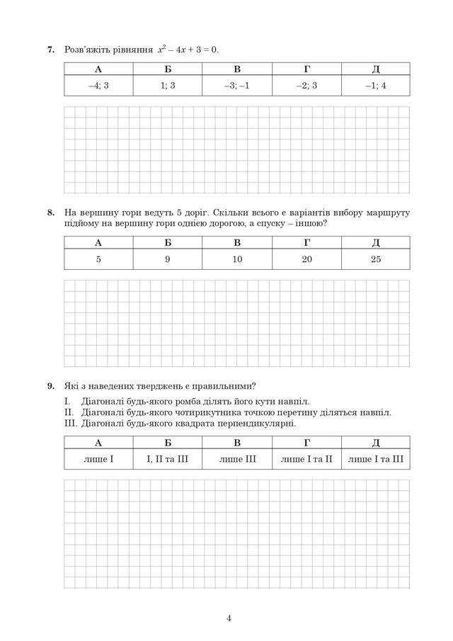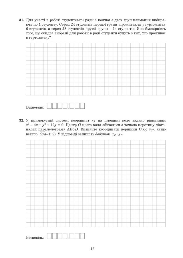 - Завдання 28-32 – це неструктуровані завдання відкритої форми з короткою відповіддю. Оцінюється в 0 або 2 бали (за правильну відповідь).