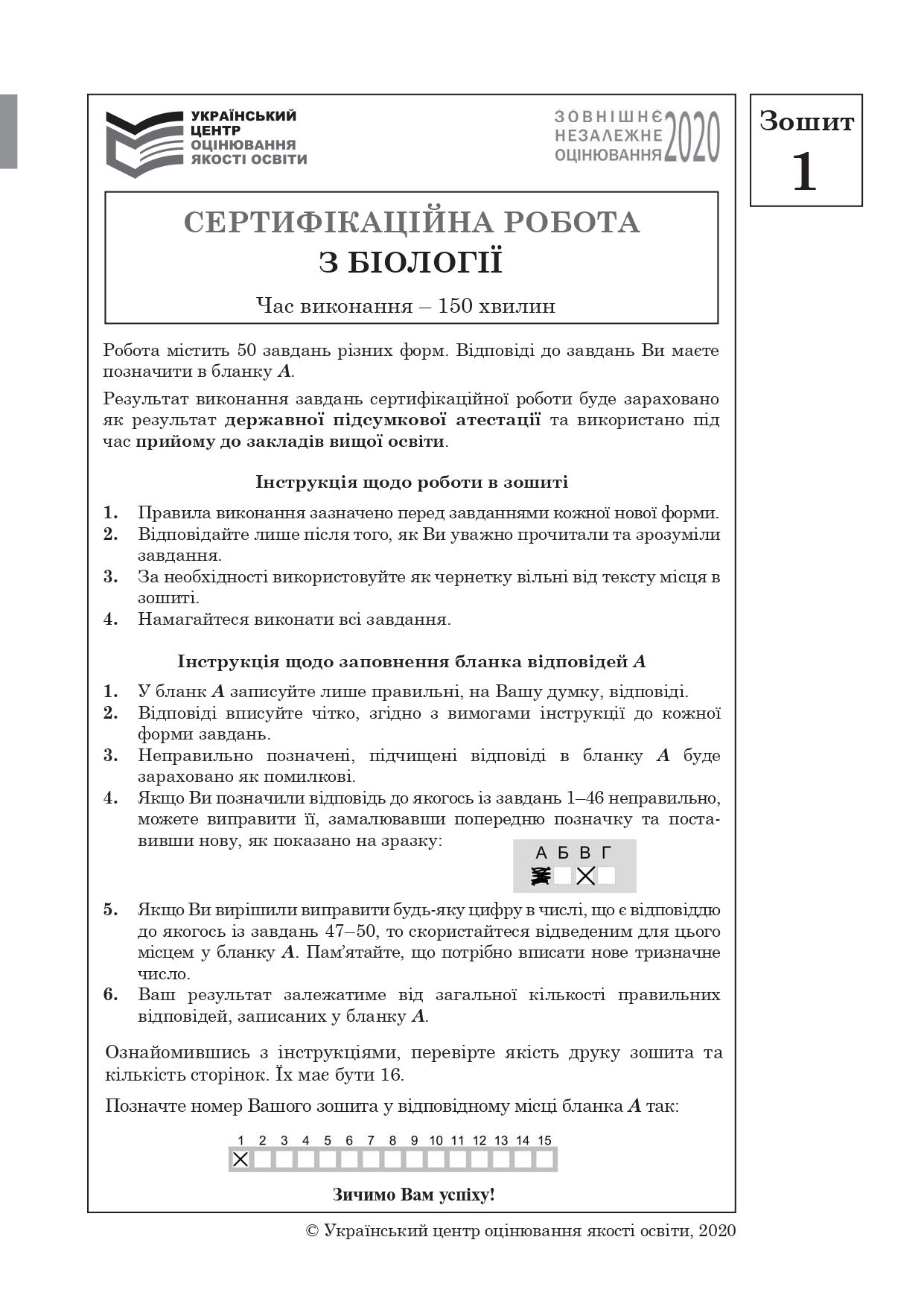 ЗНО з біології майбутні абітурієнти складали 150 хвилин. У тесті потрібно було виконати 50 завдань трьох різних форм. Максимальна кількість тестових балів – 82.