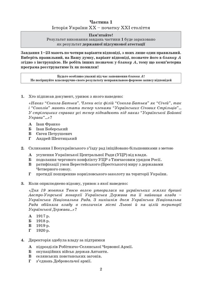 Усі завдання ЗНО історія України 2020