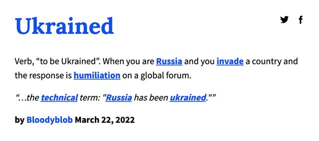 Так у мовленні тих, хто послуговується англійською на щодень, з'явилося нове сленгове слово Ukrained. Дізнатися про нього можна в онлайн-словнику англомовного сленгу Urban Dictionary.