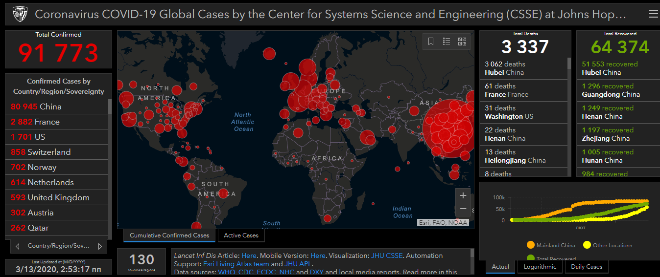 Вчені створили сайт, на якому можна в реальному часі відстежувати розповсюдження коронавірусу Covid-19 на планеті.