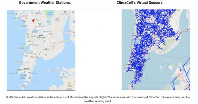 Бостонський стартап ClimaCell використовує сигнали стільникових телефонів і інших бездротових пристроїв, щоб прогнозувати погоду по всьому світу. Творці стверджують, що їхні прогнози на 60% точніші за традиційні.